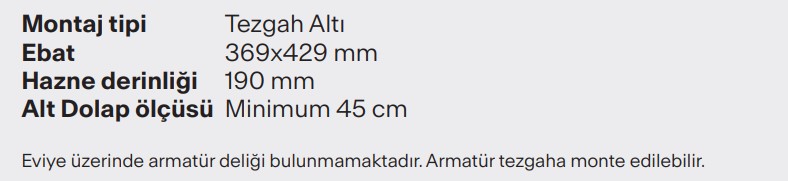 Kurulum tipi Tezgah altı